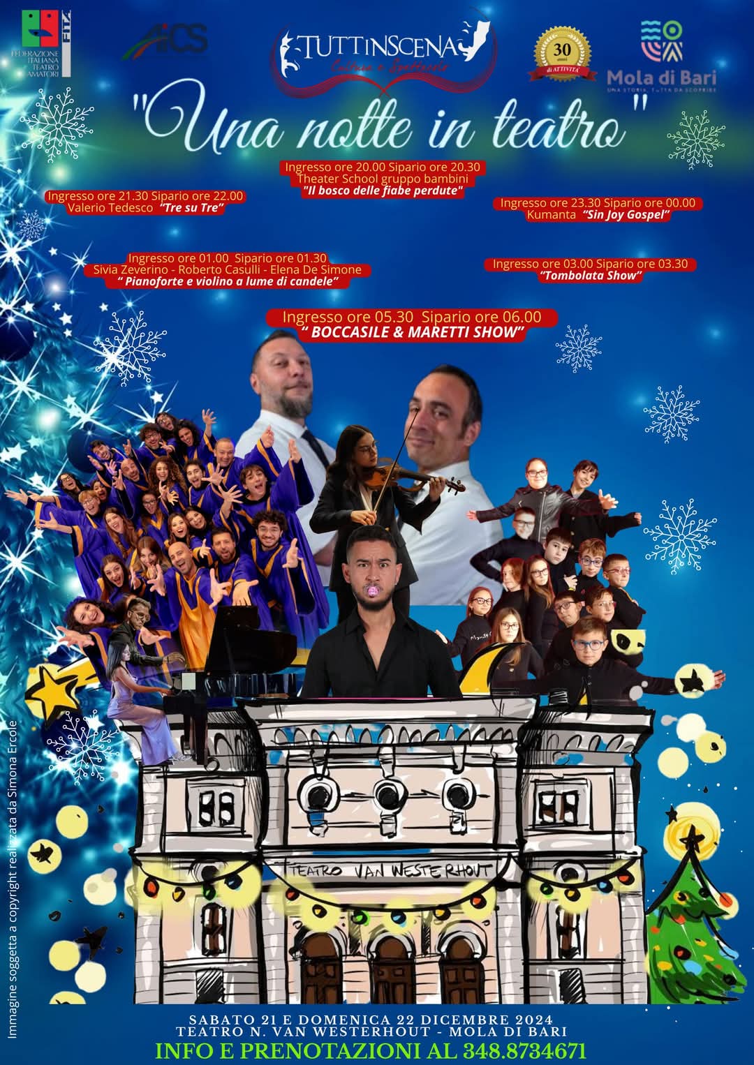 1) UNA NOTTE IN TEATRO📅 Dalle ore 20:30 di Sabato 21 dicembre alle ore 07:00 di Domenica 22 dicembre📍 Teatro N. Van Westerhout – Mola di Bari Un’...